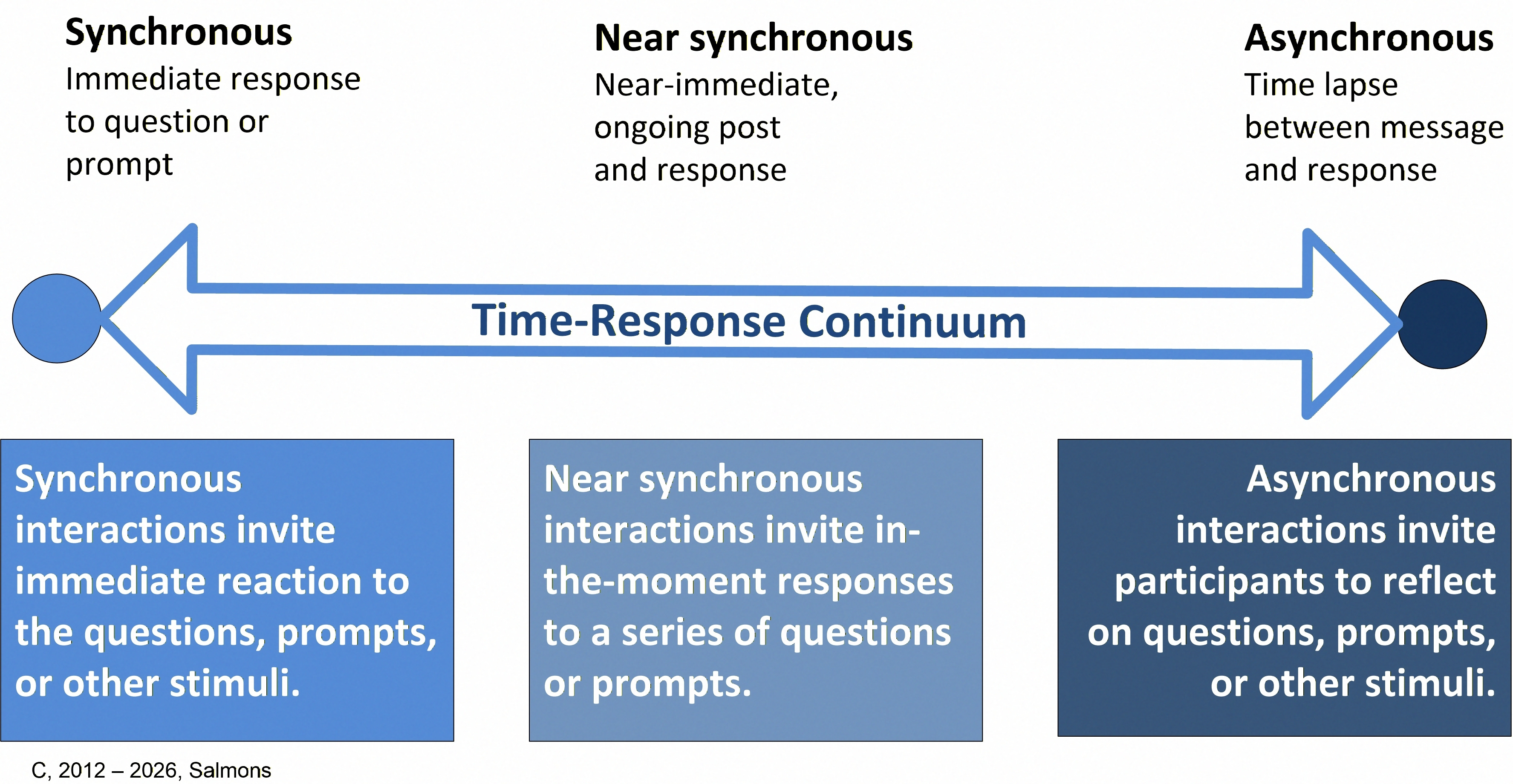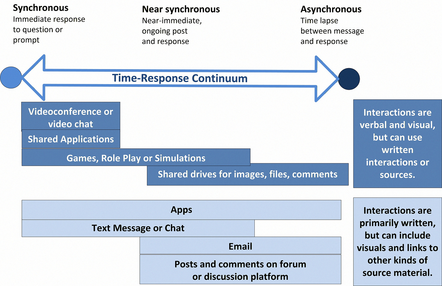 Depending on the ICT(s) you select, it is possible to have synchronous, near-synchronous and asynchronous interactions that are text-based or multichannel.